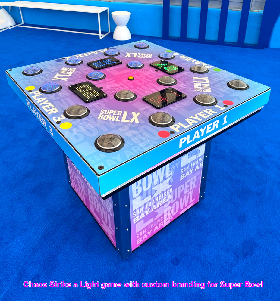 This game is the perfect game for rent for any event. You can add a little excitement to any school event, graduation, birthday party, Bar/ Bat Mitzvah. If you want to create some friendly competition for team bonding or any corporate event- you can do that with this game for rent! Chaos Strike a Light Arcade Game will be a hit!