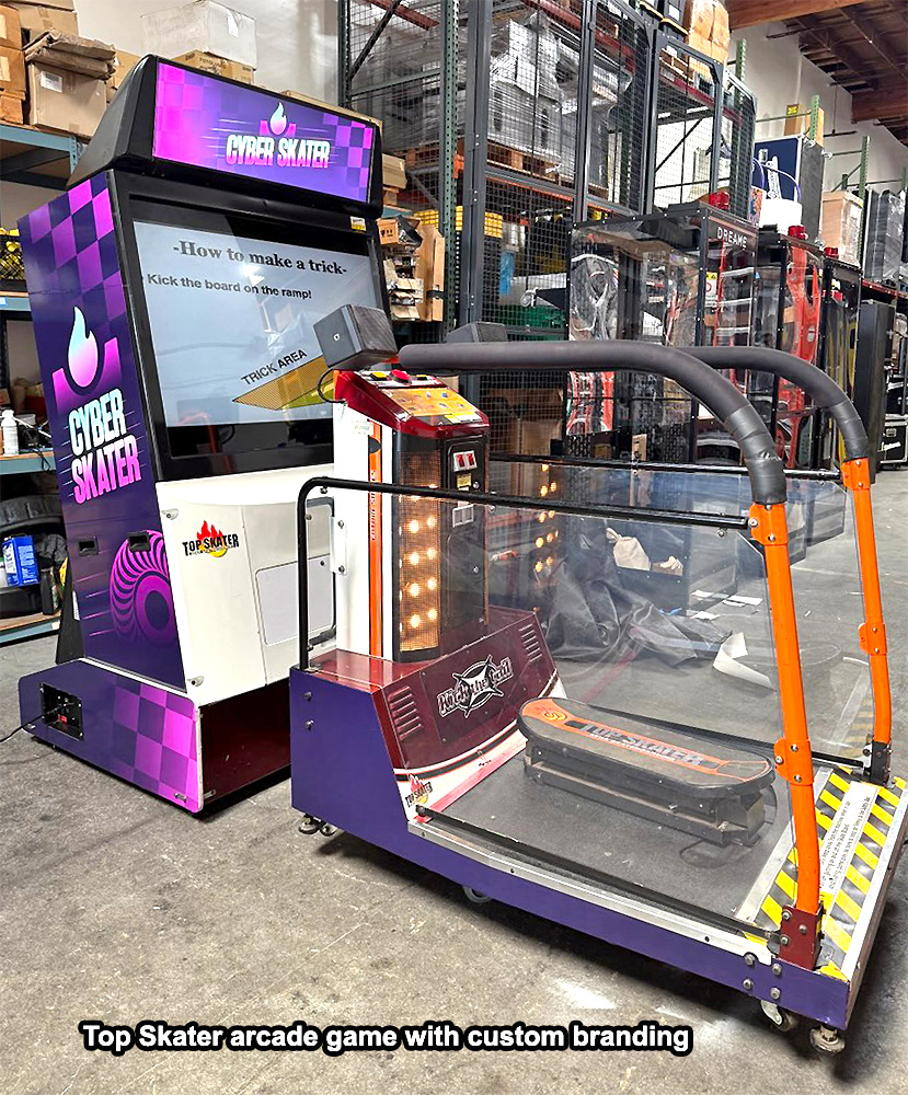 The Top Skater Skateboard Arcade Game rental has different kinds of rails, ramps, and skating objects. If the skater uses these for tricks that he or she performs, there are extra points they can gain.