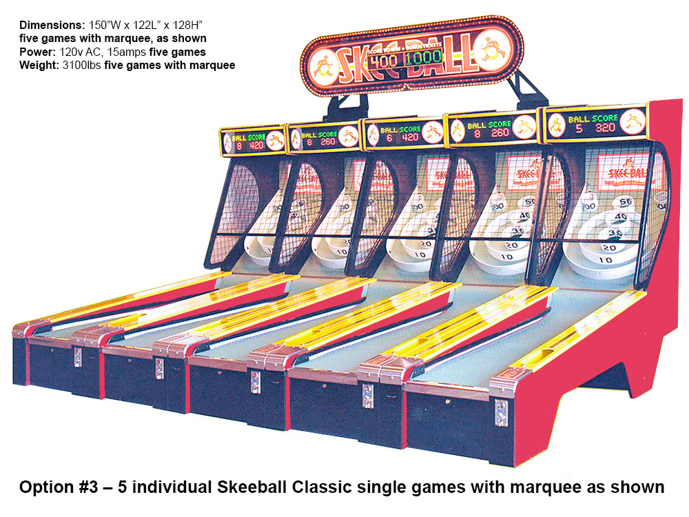 Option 3: Five individual Skeeball Classic single-lane games with marquee