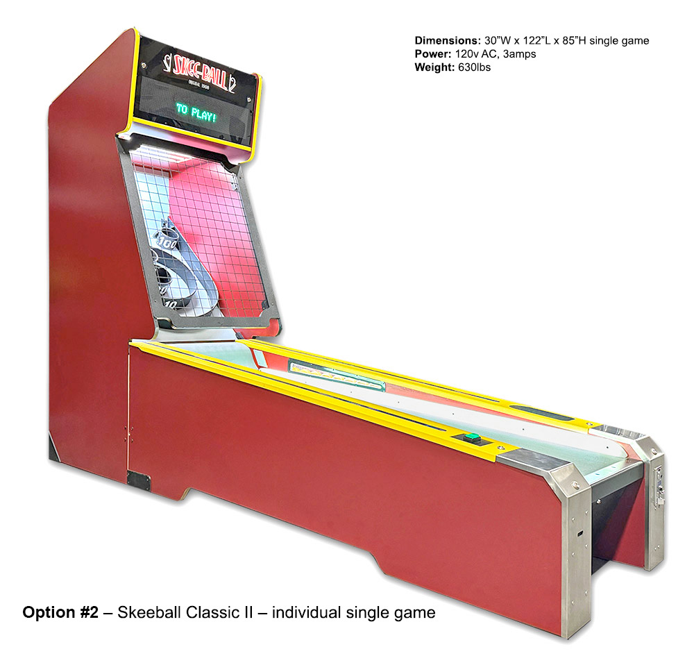 Option 1: Three individual Skeeball Classic II single-lane games with marquee
