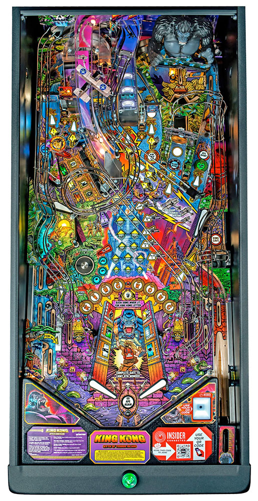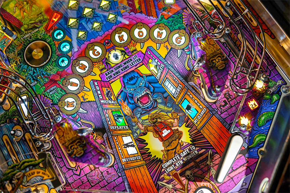 Based on the iconic King Kong legend and reimagined exclusively for pinball, players join classic characters Ann Darrow, Jack Driscoll, and Carl Denham as they journey to the mysterious Terror Island, only to witness Kong’s chaotic rampage through New York City!