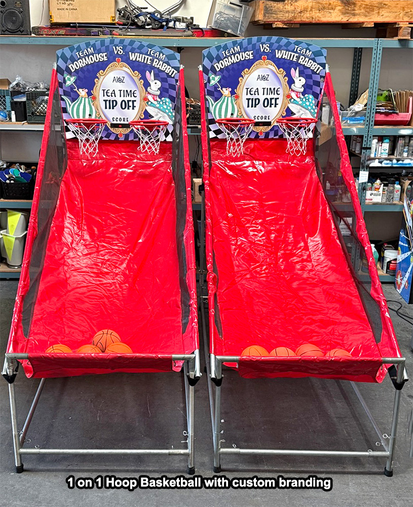 1-on-1 Hoops Electronics Basketball is the latest addition to our already extensive collection of basketball games. Along with this game, Arcade Party Rental has one the largest selection of basketball games including NBA Hoops, Double Shot NBA Hoop Troop, and our popular NBA Game Time.